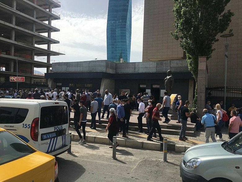 Maskesiz kişiler içeriye alınmazken, giriş yapanların ateşi ölçüldü. 38 derecenin üzerinde ateşi olanlar, geri çevrildi. Ayrıca adliyede işi olmayanlar da içeri alınmadı. Erken saatlerde başlayan kalabalık sebebiyle adliye kapısında her geçen saat yoğunluk arttı.