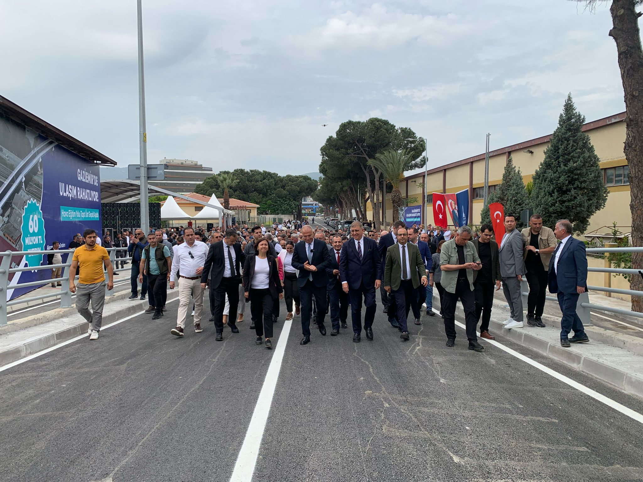 Türkü ERBİL/ SONKALEİZMİR- Gaziemir trafiğini rahatlatmak amacıyla hayata geçirilen, 60 milyonluk yatırımla tamamlanan Gaziemir Hava Eğitim Yolu Taşıt Üst Geçidi tamamlandı. 220 metre uzunluğunda, 10 metre genişliğinde ve 6 metre yükseklikte olan; Akçay Caddesi’nden Sarnıç’a alternatif olacak yeni yolun açılış törenine İzmir Büyükşehir Belediye Başkanı Cemil Tugay ev sahipliği yaptı. Törene CHP İzmir İl Başkanı Şenol Aslanoğlu, ilçe belediye başkanları, siyasi parti temsilcileri ve Gaziemirliler katıldı.