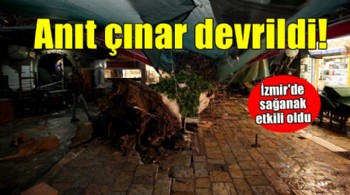 İzmir'de sağanak... Kent merkezinde anıt çınar devrildi!
