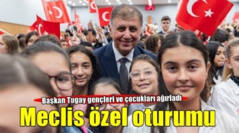28.10.2025 - 10:08 | Yerel Yönetimler | İzmir Büyükşehir Belediye Başkanı Dr. Cemil Tugay, 29 Ekim Cumhuriyet Bayramı etkinlikleri kapsamında, gençlerin ve çocukların buluştuğu Meclis özel oturumuna katıldı. Başkan ...