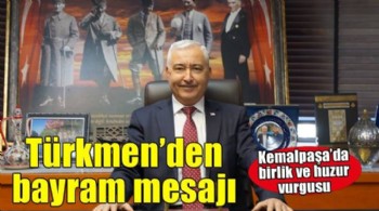 Başkan Türkmen'den ramazan bayramı mesajı 19.03.2026 - 10:59 | Yerel Yönetimler | Kemalpaşa Belediye Başkanı Mehmet Türkmen, Ramazan Bayramı’nı yayımladığı yazılı bir mesaj ile kutladı |