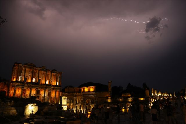Efes Antik Kenti'nde şimşekler gökyüzünü aydınlattı ( 3 / 13 )