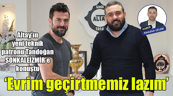 Altay'ın iyi oyunculara sahip olduğunu ancak bu isimlerin sahaya iyi şeyler vermeleri gerektiğini dile getiren Tandoğan, "Onları o noktaya getirmek benim işim. İnşallah kısa sürede sağlarım. Büyük camiaların hiçbir zaman kötü ve başarısız süreç yaşamaları taraftarı mutlu etmez. Taraftara hak veriyorum. Ama hiçbir hoca da bunu istemez. Bizim derdimiz ve düşüncemiz Altay'ı üst sıralarda tutmak. Çalıştığımız her yerde duruşumuzla, hırsımızla, bize duydukları sempatiyle iyi ortamlar oluşturduk. Takımın içerisinde o enerjiyi gördükten sonra birlikteliği taraftarla da sağlarsak iyi işler başarırız. Taraftarımızdan tek isteğim bize inansınlar ve güvensinler" yorumunu yaptı.