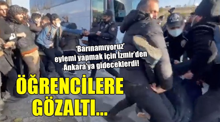 SONKALEİZMİR-Yetersiz KYK yurtlarına, yüksek kiralara ve hayat pahalılığına dikkat çekmek amacıyla "Barınamıyoruz, geçinemiyoruz" eylemi yapmak için İzmir'den Ankara'ya gitmek isteyen öğrencilerin otobüsü durduruldu. Polis ile öğrenciler arasında tartışma yaşanırken, sosyal medyaya düşen görüntülerde gerginliğin artması sonucu bazı öğrencilerin yaka paça gözaltına alındığı görüldü. Barınamıyoruz Hareketi'nin sosyal medya hesabından yapılan açıklamada 4 öğrencinin Ankara girişinde gözaltına alındığı, diğerlerinin de otobüste rehin tutulduğu duyuruldu.