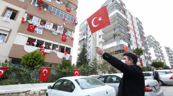 Her yanı Atatürk ve Türk bayraklarıyla donatılan apartmanlarda yaşanan coşku gün boyu devam etti. Araçtan anons yaparak Bucalıların bayramını kutlayan Başkan Kılıç, “Ata’mızın çocukları, bayramınız kutlu olsun. Bu sene bayramımızı evlerimizde kutluyoruz. Ama sizlere söz; yine sokaklarda bayraklarla şarkılarla hep birlikte nice bayramlar kutlayacağız. Bucalının Atatürk sevgisi evlere sığmaz. Bu süreci birlikte atlatacağız. Ama siz evde kalmaya devam edin” diye konuştu.