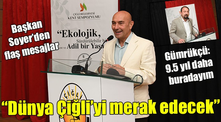 Sempozyumun açılış konuşmasını yapan İzmir Büyükşehir Belediye Başkanı Tunç Soyer; “Çiğli'de ilk defa böyle bir sempozyum gerçekleşiyor. Tüm kalbimle tebrik ediyorum. Çiğli Belediyemizin ev sahipliğinde iki gün boyunca devam edecek bu sempozyumda yerel yönetimler, kentsel dönüşüm, tarım, yenilenebilir enerji, iklim değişikliği, doğa, katılımcılık, sivil toplum, demokrasi, ekonomi, kültür, kooperatifçilik gibi onlarca konu anlatılacak, tartışılacak. Bu sempozyum önemli çünkü ilk kez böyle bir etkinlik düzenleniyor. Belediyemizin Çiğli’de bir kent bilinci oluşturma arzusunu ve katılımcı bir yaklaşımla Çiğli’yi yönetme iradesini tebrik ediyorum. Ülkemizde son 15 yılda kentler açısından çok büyük zararlar gördük bu da merkezi müdahaleler nedeniyle oldu” dedi.