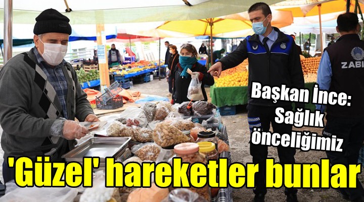 Semt pazarlarında yeni önlemler aldıklarını belirten Güzelbahçe Belediye Başkanı Mustafa İnce, “Semt pazarlarımızda yeni bir döneme girildi. Tek bir noktadan giriş yapılıp farklı bir noktadan çıkış yapılacak. Vatandaşlarımızın girişlerde ateşleri ölçülecek, maskesi bulunmayan vatandaşlarımıza maske dağıtılacak. Ekiplerimiz pazar esnafımıza gerekli bilgilendirmeyi ve uyarıları yapıyor. Eldiven ve maske takılması, tüm ürünlerin poşetlenmesi konusunda denetimleri sıklaştırıyoruz. Tezgah aralıklarına dikkat ediliyor" dedi.