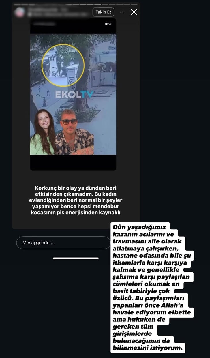 Kendisi için bu sözleri sarf eden kişi için dava açacağını söyleyen Kaspar "Dün yaşadığımız kazanın acılarını ve travmasını aile olarak atlatmaya çalışırken, hastane odasında bile şu ithamlarla karşı karşıya kalmak ve genellikle şahsıma karşı paylaşılan cümleleri okumak en basit tabiriyle çok üzücü. Bu paylaşımları yapanları önce Allah'a havale ediyorum. Elbette ama hukuken de gereken tüm girişimlerde bulunacağımın da bilinmesini istiyorum" dedi.