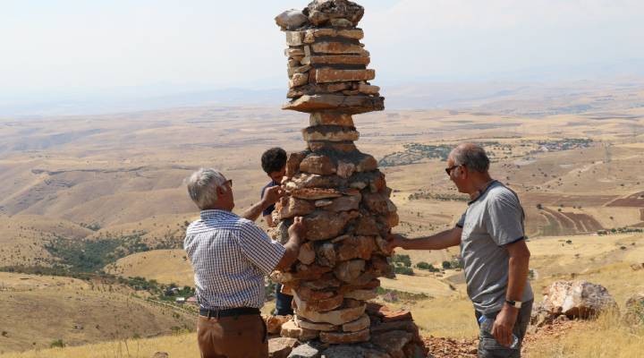 "Mevlevilikteki semahlara baktığımız zaman bir el yukarıda diğer el aşağıdadır. Bir el yeri, bir el göğü gösterir. Dönüp kendilerinden geçtiklerinde evrenle bütünleşme anlamı çıkar. O yüzden heykelin adı 'Semah'. Semahın kökeninde insanın yukarıdaki kozmik enerjiyi aşağı, aşağıdakini yukarı taşıdığı anlamı vardır. Bu bir tanrıyla buluşmadır. Ben de kulluklardan yolara çıkarak taşları üst üste koydum ve anlam vermeye çalıştım. Heykel benim için çok önemli. Heykel ileride köy olduğunu gösteriyor. Daha da ileride Babadağ var. O bölgedeki insanların halen daha doğayla, ağaçla ilişkileri iyi. Biten kulluk geleneğine yeniden anlam vermek istedim. İleride sempozyumlar yaparak işaretleri Babadağ'a kadar çıkarmak istiyorum. Orayı göstermesini hedefliyorum. İnsanlara doğanın parçası olduğumuzu anlatmak, dikkat çekmek istiyorum. Yapımında başta heykeltıraş Ferit Yazıcı ve Antalya Güzel Sanatlar Fakültesi’nden öğrencilerin katkıları var. Köy yolunun üzerindeki tarlada kavşak var, heykeli oraya yapıyorum. Karşısında Babadağ bulunuyor. Babadağ, insanların gidip adak adadıkları, bez bağladıkları bir yer."