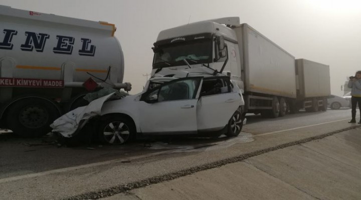 Kum fırtınası nedeniyle aralarında 2 kamyon ile 2 TIR'ın bulunduğu 8 araç, birbirine girdi. Zincirleme kazada yaralanan 8 kişi, Konya ve Cihanbeyli ilçesindeki hastanelere kaldırıldı.