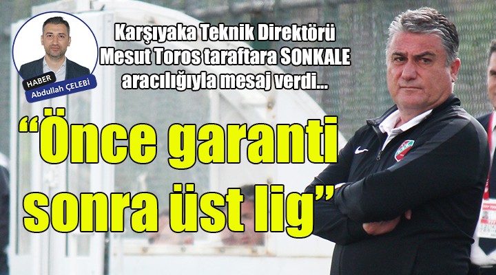 Abdullah ÇELEBİ/SONKALE-TFF 3. Lig'de geçen sezon altyapı ağırlıklı kadro ile Karşıyaka'ya Play-Off oynatan teknik direktör Mesut Toros, camiaya SONKALE aracılığıyla önemli mesajlar verdi. "Hedefsiz Karşıyaka olmaz" diyen tecrübeli teknik adam, "Geçen sezon yakaladığımız sinerjiyi devam ettirmek istiyoruz. Kaldığımız yerden devam edeceğiz. Hedefimiz tabi ki üst lige yükselmek ancak öncelikle kendimizi garantiye alacağız. En önemlisi çok çalışacağız. Geçtiğimiz yıla göre daha fazla çalışacağız. Camiamızın beklentilerinin farkındayız. Bu sezon için beklentiler daha da yükseldi. Bunu karşılamak için elimizden geleni yapacağız" dedi.