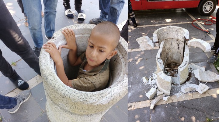 Olay, öğle saatlerinde kent merkezindeki Şerzan Kurt Parkı'nda meydana geldi. A.K., parkta oyun oynadığı sırada beton çöp kovasına girdi. A.K.'nin çöp kutusunda sıkıştığını fark eden çevredekiler itfaiye ekiplerine haber verdi.