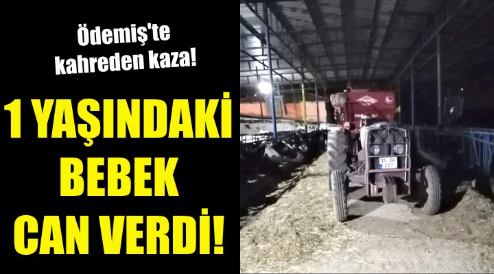 Emirli Mahallesi'nde bulunan bir çiftlikte İ.K'nin (40) kullandığı 35 BC 227 plakalı arkasında yem karma makinası bulunan traktör, geri manevra yaptığı sırada 1 yaşındaki Suriye uyruklu Muhammed Himeydi'ye çarptı.