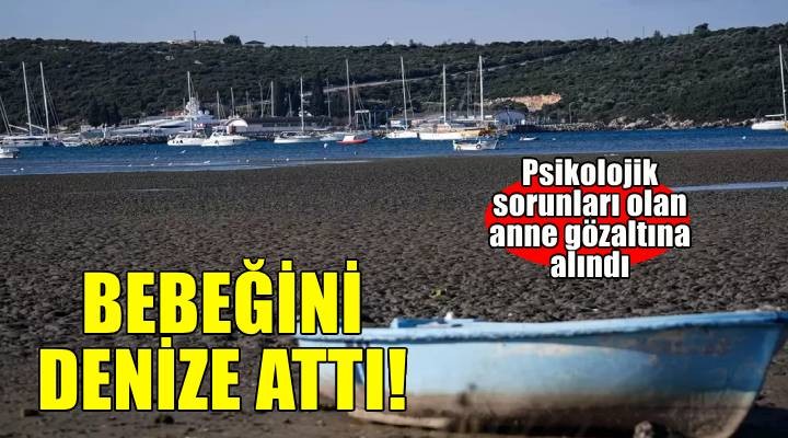 Olay, dün saat 13.00 sıralarında Bengiler Mahallesi Sahil Yolu'nda meydana geldi. Geçimsizlik ve psikolojik sorunları olduğu belirtilen Kevser C. (30), 1 yaşındaki Engin isimli bebeğini denize attı. Çevredekiler tarafından denizden çıkartılan Engin bebek için olay yerine sağlık ve polis ekipleri çağrıldı. Sağlık ekibinin ilk müdahalesinin ardından Engin bebek, ambulansla Seferihisar Devlet Hastanesi'ne kaldırıldı. Tedaviye alınan Engin bebeğin hayati tehlikesinin sürdüğü bildirildi. Polis, olayın ardından anne Kevser C.'yi gözaltına aldı. Kevser C.'nin polisteki işlemlerinin sürdüğü bildirildi.