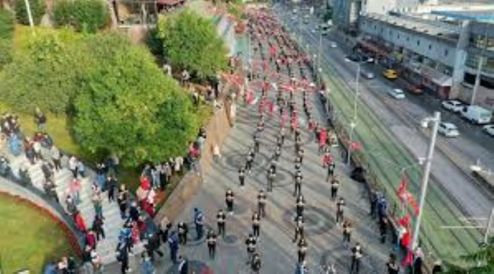 İzmit Belediyesi tarafından 29 Ekim Cumhuriyet Bayramı kutlamaları kapsamında düzenlenen etkinlikte Kültür Tepesi'ndeki Atatürk Anıtı önünde toplanan 1000 kişi, zeybek oynadı.