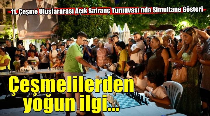 Çeşme Cumhuriyet Meydanı’nda Dünyanın En Genç Büyük Ustası, Milli Sporcu GM Yağız Kaan Erdoğmuş’un Çeşme Belediyespor Satranç Takımı sporcuları ile yaptığı Simultane Gösteri, 7’den 70’e büyük ilgi gördü. Simultane Gösteri’de, Türkiye Satranç Federasyonu (TSF) Organizasyonlar Kurulu Başkanı Mehmet Sarıtaş, Türkiye eski şampiyonları, sporcular, hakemler, antrenörler ve sporcu aileleri ile çok sayıda vatandaş yer aldı.