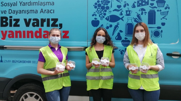 İzmir Büyükşehir Belediyesi Ramazan dayanışmasını sürdürüyor. Başkan Tunç Soyer’in çağrısıyla başlatılan “Biz Varız” kampanyası kapsamında İzmirlilerin katkı sağladığı iftar dayanışmasında yemek dağıtımları devam ediyor.