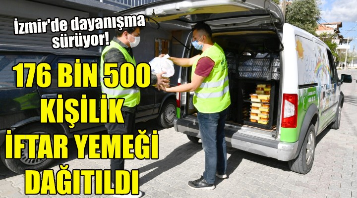 Toplu iftar yemeği organizasyonları yapılamadığı için iftar yemeği paketlerini yurttaşların kapısına kadar ulaştıran İzmir Büyükşehir Belediyesi, tam kadro sahada çalışmaya devam ediyor. Bugüne kadar 41 bin 813’ü bağış olmak üzere 176 bin 500 kişilik iftar yemeği dağıtıldı. İzmirli yurttaşlar Biz Varız dayanışması kapsamında Bizİzmir dijital platformları ve Halkın Bakkalı web sitesi üzerinden 1 milyon 406 bin liralık iftar yemeği paketi ve gıda kolisi satın aldı.