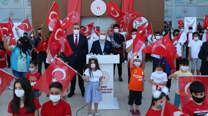 Törene katılan İzmir Valisi Yavuz Selim Köşger, Buca Kaymakamı Mahmut Nedim Tunçer, İzmir İl Gençlik ve Spor Müdürü Murat Eskici ve törene katılan gençler, Cumhurbaşkanı Recep Tayyip Erdoğan ile İstiklal Marşı'nın seslendirdi.
