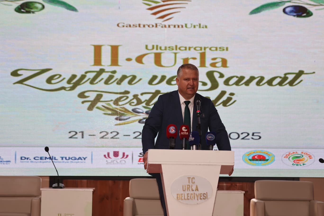 Gerçekleştirdiği açılış konuşmasında festivalde eğlenmenin ve keyif almanın bu işin bir parçası olduğunu belirten Urla Belediye Başkanı Selçuk Balkan, asıl gayelerinin tarımsal üretimi sürdürülebilir kılmak, çiftçinin emeğini göstermek ve pazarını genişletmek olduğunu vurguladı. Başkan Balkan gerçekleştirdiği konuşmasında “Bu topraklar için zeytin bir meyveden çok daha fazlasıdır. Kökleri, insanlığın hatırlayabildiğinden çok daha geriye uzanan bir hafıza taşır. Dünyanın bilinen ilk zeytinyağı işliği Klazomenai, bu hafızanın en güçlü kanıtlarından biridir. Antik dönemlerden günümüze ulaşan bu kadim kültür, bizlere miras kalan çok kıymetli bir hazine. Çok şanslıyız. Toprakla başlayan bu hikâye, bu festivalde sanatla buluşacak, bilimle güçlenecek, gastronomiyle lezzetlenecek. Bugün, geçmişimizi onurlandırmak, bugünü değerli kılmak ve geleceğimizi şekillendirmek için toplandık. Her dalında ayrı bir hikâye taşıyan zeytin ağacına, bu festivalde sizlerle birlikte kendi öykümüzü de ekleyeceğimize inanıyorum” ifadelerine yer verdi.