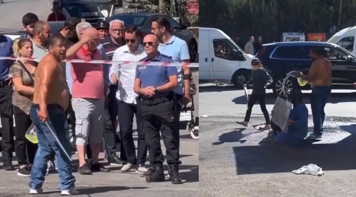 Olay, öğle saatlerinde Ilıca Mahallesi Prof. Dr. Türkan Saylan Caddesi üzerinde meydana geldi. İlçede seyyar olarak balık satıcılığı yapan R.E.'ye, şikayet üzerine zabıta ekipleri tarafından para cezası kesildi. Ceza kesilmesine sinirlenen R.E., yanında bulunan iki çocuğu ve kendi üzerine benzin dökerek eylem yaptı. R.E., elindeki sallama tipi bıçakla da kimseyi yanına yaklaştırmadı. İhbar üzerine bölgeye polis, sağlık ve itfaiye ekipleri sevk edildi. Yapılan müzakerelerin ardından R.E. ikna edildi ve eylem sona erdi. 4 çocuk babası olduğu öğrenilen R.E. hakkında işlem yapılmadığı, Narlıdere Kaymakamlığı ve Narlıdere Belediyesi tarafından da yardım sağlanacağı belirtildi.