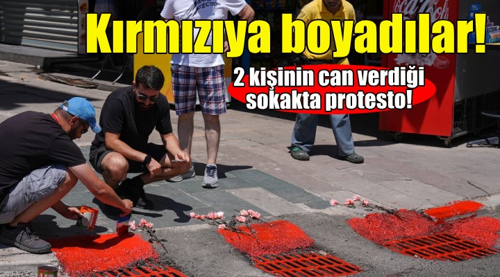 Öte yandan, sivil toplum kuruluşları da olayın yaşandığı sokakta eylem yaptı. Enver Dündar Başer Sokak'ta toplanan bir grup, sokaktaki mazgalları kırmızıya boyadı.