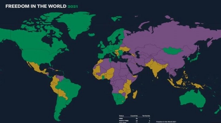 Raporda, "2020'de öldürücü bir pandemi, ekonomik ve fiziksel güvensizlik ve şiddetli çatışmalar dünyayı yıkıma uğratırken, demokrasinin savunucuları otoriter düşmanlarına karşı mücadelede yeni ağır kayıplar verdi, uluslararası denge tiranlık lehine değişti" ifadeleri yer aldı.
