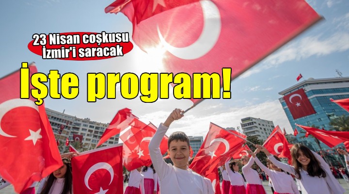 23 Nisan Ulusal Egemenlik ve Çocuk Bayramı, İzmir’de birbirinden eğlenceli etkinliklerle kutlanacak. Kültürpark’ta kurulacak oyun alanları, sahne etkinlikleri ve atölyeler, çocukların coşkusunu doruğa çıkaracak. Kentin farklı noktalarında çeşitli spor etkinlikleri, konserler, atölyeler ve şenlikler düzenlenerek İzmir’de bayram havası oluşturulacak. Resmi program, 23 Nisan’da 09.30’da Cumhuriyet Meydanı’nda başlayacak. Kent protokolü tarafından Atatürk Anıtı’na çelenk konulacak. 10.00’da ise kutlama töreni başlayacak.
