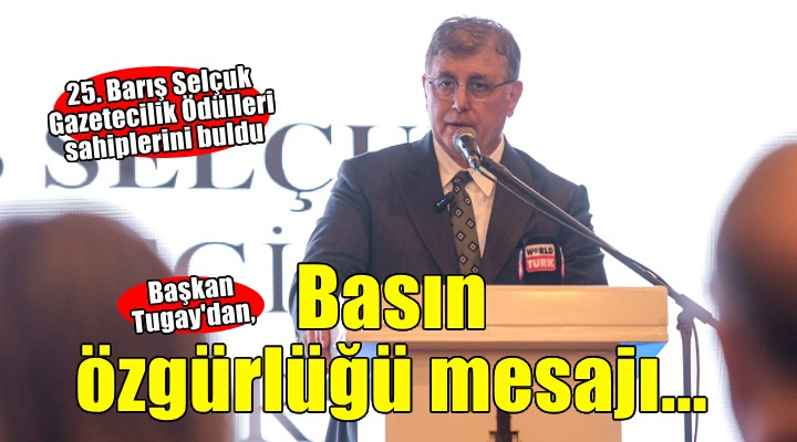 10 Ocak'ın 1960 Anayasası’nın özgürlükçü ortamı sonucu 1961 yılında, basın çalışanlarına haklar ve yasal güvence tanıyan 212 Sayılı Kanun’un yürürlüğe girmesinin yıl dönümü olduğuna dikkat çeken Başkan Tugay, “1962 ile 1971 yılları arasında bayram olarak kutlanacak kadar önemli haklar tanıyan kanun, 12 Mart 1971 Muhtırası’ndan sonra tırpanlandı, verilen kimi haklar geri alındı. 1971 yılından bu yana “Çalışan Gazeteciler Günü” olarak anılıyor. Gazeteciler bu günü kutlamayı içlerine pek sindiremiyor. Barış Selçuk Ödülleri törenini 10 Ocak öncesinde düzenlememiz bu nedenle büyük önem taşıyor. İstiyoruz ki gazetecilerin kutlanacak sebepleri ellerinden alınmasın. Onurlandırılsınlar, teşvik edilsinler, basın özgürlüğü mücadelesinde yalnız kalmasınlar. 10 Ocak’lar tekrar bayrama dönsün. Toplumun tüm kesimlerini kapsayan bir meslek, toplumun tüm kesimlerinden destek görmeyi hak ediyor. Gazetecilik sabır ister, azim ister, adanmışlık ister, cesaret ister. Bu mesleğin özgürlüğünü kutlamak ve ödüllendirmek de cesaret ister. Biz o cesareti gösteriyoruz. Gazeteciliği ödüllendirmek, hayatı ve özgürlüğü pahasına gerçeğin peşinde koşanların safında durmak demektir. Basın özgürlüğünden, ifade özgürlüğünden yana olmak demektir. Demokrasiden taraf olmak demektir ki bir ülkede ancak basın özgürse demokrasi vardır. Biz basın özgürlüğünün, ifade özgürlüğünün, demokrasinin tarafındayız. Her ne pahasına olursa olsun kamu yararını her şeyin, her türlü çıkarın önünde tutan, meslek etiğine sarılarak çalışan gazetecilerin yanındayız. Gazeteciliği ödüllendirmeye, kutlamaya devam edeceğiz. Ta ki bu meslek, hakkını geri alana, 10 Ocak’lar yeniden bayram olana dek taleplerinizi sizinle birlikte dile getireceğiz” şeklinde konuştu.