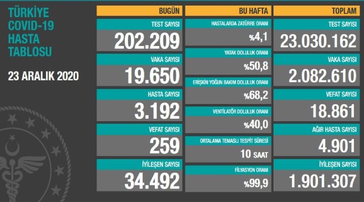 Sağlık Bakanı Fahrettin Koca, koronavirüs salgını nedeniyle yaşanan yeni can kaybını, vaka ve hasta sayısını açıkladı. Sağlık Bakanı Fahrettin Koca, "Bugün tespit edilen 3.192 hastamız var. Aktif vaka sayısındaki düşüş sevindirici. Yeni vaka sayısını da kısıtlamalara ve tedbirlere uyumla azaltacağız. Bu dönemde ev içi bulaşmaları engellemek son derece önemli. Tehdit neredeyse tedbir oraya odaklanmalı" açıklamasını yaptı.