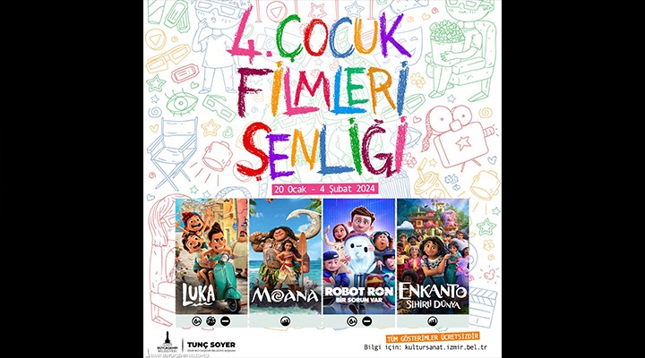 İzmir Büyükşehir Belediye Başkanı Tunç Soyer’in “çocuk dostu kent” vizyonu doğrultusunda başlatılan Çocuk Filmleri Şenliği’nin dördüncüsü 20 Ocak-4 Şubat tarihleri arasında yapılacak. Çocuklara ara tatilde karne hediyesi olarak planlanan şenlik kapsamında Tire’den Dikili’ye Kınık’tan Seferihisar’a İzmir’in birçok ilçesinde filmler ücretsiz gösterilecek. Şenlik kapsamında “Luka”, “Moana”, “Enkanto: Sihirli Dünya” ve “Robot Ron: Bir Sorun Var” filmleri sunulacak. İlçelerdeki gösterim tarihleri ve detaylı program için “kultursanat.izmir.bel.tr” adresi ziyaret edilebilir.