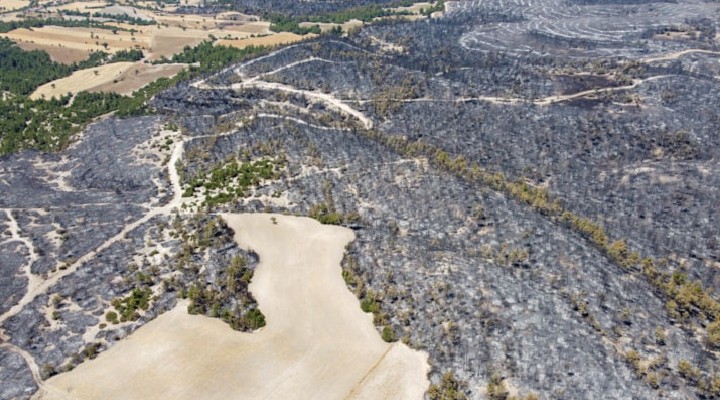 Rüzgarın da etkisiyle kısa sürede büyüyen yangının ardından, bölgede yanan alanlar gri ve siyaha büründü.