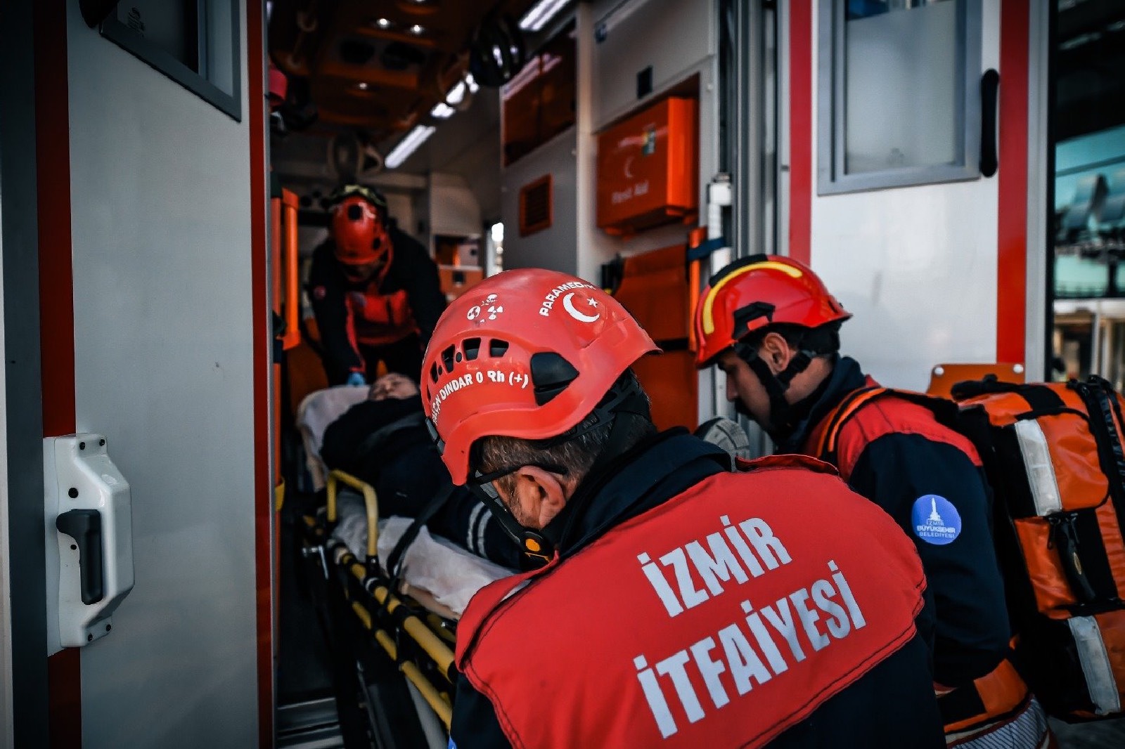 İzmir Büyükşehir Belediyesi İtfaiye Dairesi Başkanlığı ekipleri, yüksek katlı binalarda olası yangın ve acil durumlara hazırlık amacıyla Bayraklı gökdelenler bölgesinde bulunan 47 katlı bir binada kapsamlı bir yangın ve arama kurtarma tatbikatı gerçekleştirdi. Senaryoya göre, binanın 11. katındaki temizlik odasında sigaranın söndürülmeden atılması sonucu çıkan yangın kısa sürede büyüdü. Çalışanlar 112 Acil Çağrı Merkezi’ne haber verdi. Olay yerine hızla ulaşan itfaiye ekipleri, mahsur kalan bir personeli güvenli şekilde kurtarırken, yangını da kontrol altına aldı. Dumandan etkilenen kişi AKS ekiplerince ilk müdahaleyi aldı.