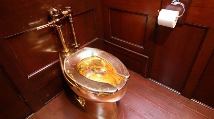 İngiltere’de bir sanat eseri olarak sergilenen 5 milyon dolar değerindeki ‘Amerika’ isimli altın tuvalet, ülkenin eski Başbakanı Winston Churchill’in doğduğu Bleinheim Sarayı’ndan çalındı. Klozet 18 karat altından yapılmıştı.