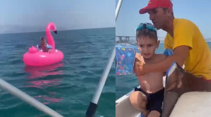 ,Olay, dün saat 14.00 sıralarında Hersek Plajı’nda meydana geldi. Deniz simidiyle yüzen 7 yaşlarında erkek çocuğu, sahilden yaklaşık 700 metre uzaklaştı. Durumu fark eden aile, plajda görevli cankurtaranlara haber verdi. Cankurtaranlar tekne ile çocuğun yanına gitti.