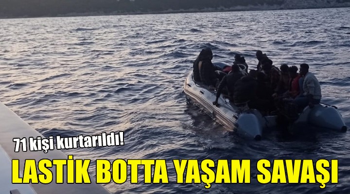 Çeşme açıklarında lastik botun motor arızası nedeniyle sürüklendiği ihbarı üzerine bölgeye giden Sahil Güvenlik ekipleri, botlarla 42 sığınmacıyı karaya çıkardı.