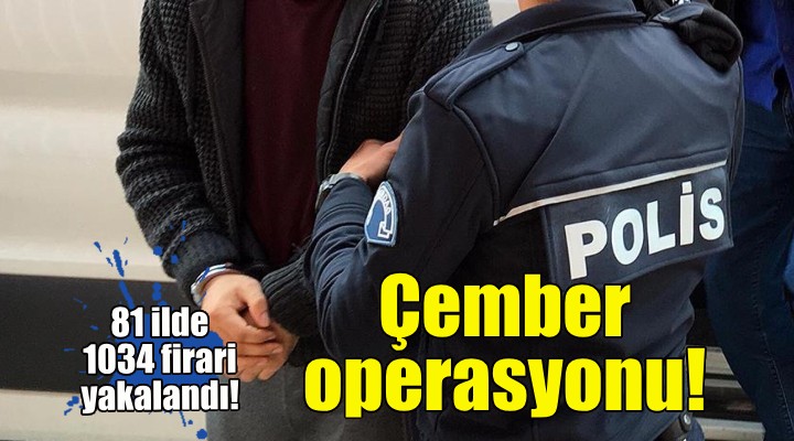 81 ilde eş zamanlı olarak 24 bin 483 personelle 4 bin 158 ikamet ve 4 bin 348 noktada yapılan uygulamalarda aranan şahıslara yönelik gerçekleştirilen ‘ÇEMBER-7 operasyonlarında’ arama kaydı bulunan bin 34 firari yakalandı.