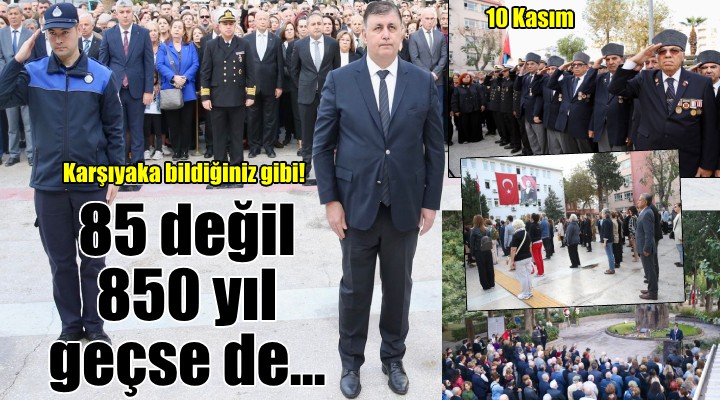 Törende konuşan Karşıyaka Belediye Başkanı Dr. Cemil Tugay, “Tarihe bir destan olarak geçen kurtuluş savaşına önderlik ederek, ülkemizin bağımsızlığına kavuşmasını sağlayan önderimize minnettarız. Demokratik bir rejim olan Cumhuriyeti kuran ve bizlere böylesine değerli kocaman bir mücevher gibi Türkiye Cumhuriyeti’ni armağan eden büyük atamız sadece bizim için değil dünya için çok değerli bir liderdir. Yaptıklarıyla, ‘yurtta barış dünyada barış’ sözüyle tüm dünyanın kahramanıdır, tüm dünyanın değeridir. Bugün ölümünün, onu kaybedişimizin 85. yılı, ama eminim 850 yıl da geçse yine hatırlanacak yine aynı derecede saygı duyulacak bir lider. Bizler böyle bir lidere sahip olduğumuz için onu kaybettiğimiz bugünde üzülmekten çok gurur duymalıyız. Yas tutmaktan çok kendimize aynayla bakmalıyız. Bize emanet ettiği değerlere bakmalıyız; Cumhuriyete, demokrasimize, Atatürk ilkelerine, insanlarımıza en çok kadınlarımıza verdiği haklara bakmalıyız” dedi.