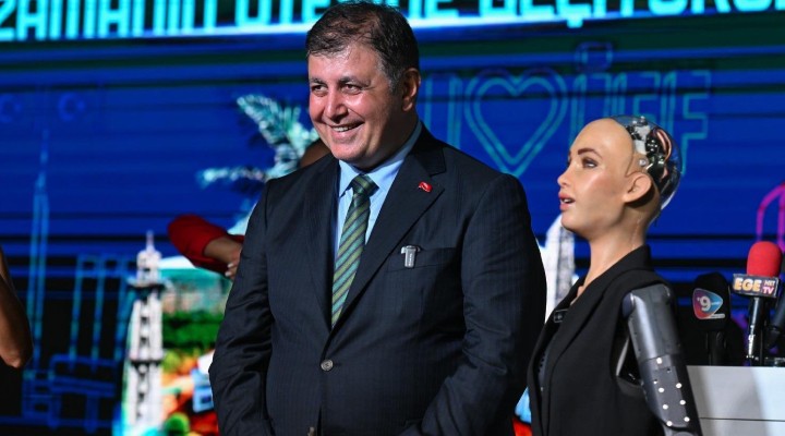 Teknoloji temasıyla düzenlenen 93. İzmir Enternasyonal Fuarı’nın sürpriz konuğu, Hong Kong merkezli Hanson Robotics tarafından tasarlanan insansı robot Sophia, büyük ilgi gördü. Açılış törenine ve resepsiyona katılan, İzmir Büyükşehir Belediye Başkanı Dr. Cemil Tugay ile sahnede selfie çekilen, makas tutup kurdele kesen, sanatçı Okan Bayülgen, Prof. Dr. Emrah Safa Gürkan ile birlikte TechTalks’ta yer alan Sophia, fuar ziyaretçilerinin büyük ilgisiyle karşılaştı.