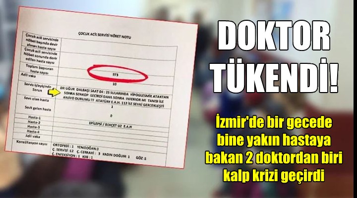 Hasta yoğunluğu ve yetersiz doktor sayısı doktorların hayatını tehdit etmeye başladı. SÖZCÜ'den Latif Sansür'ün haberine göre, İzmir Buca'daki Seyfi Demirsoy EAH Çocuk Acil Servisi’nde nöbeti tutan iki doktordan biri olan Uğur Dalbaşı, hasta yoğunluğuna dayanamayarak kalp krizi geçirdi.