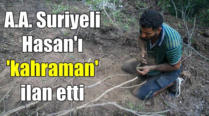 A.A. ise bugün sabah saatlerinde Menderes'le ilgili şaşırtıcı bir haber servis etti. İzmir Menderes'teki orman yangını sırasında avucuyla toprak taşırken fotoğraflanan Suriyeli Hasan El-Hasan'ı 'kahraman' ilan etti. Muhabir gönderip Suriyeli Hasan ile röportaj yaptıran A.A. bunu "Suriyeli 'yangın kahramanı' Hasan'ın yürek burkan hikayesi" başlığıyla servis yaptı.