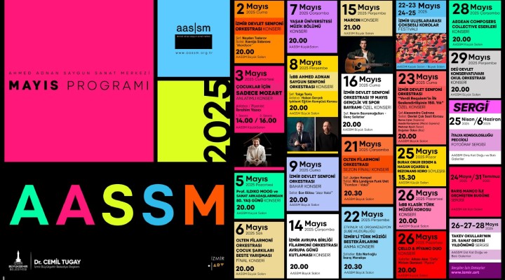İzmir’de kültür ve sanatın adresi Ahmed Adnan Saygun Sanat Merkezi, mayıs ayı için İzmirlileri sanata doyuracak bir program hazırladı. Mayıs etkinliklerine damga vuracak konserlerin yanı sıra birbirinden farklı etkinlikler ve sergiler de İzmirli sanatseverlerle buluşacak.