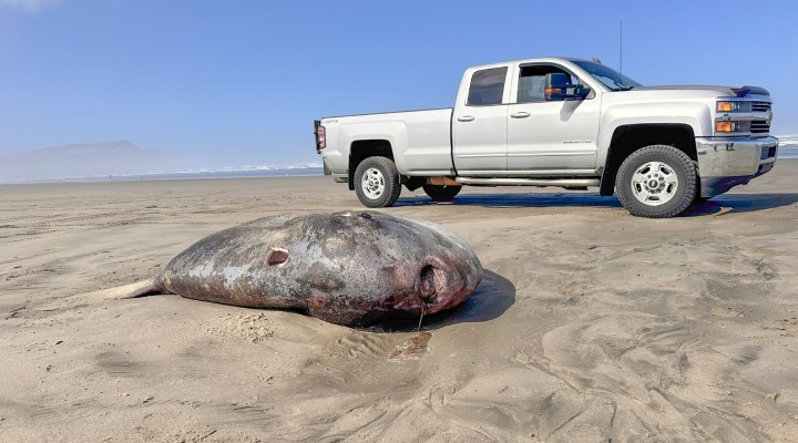 ABD’de 3 Haziran’da Oregon eyaletinin Seaside bölgesinde kıyıya vuran dev deniz canlısının daha önce keşfedilen fakat nadir görülen ‘güneş balığı’ türünün farklı bir cinsi olan ‘kapüşonlu güneş balığı’ olduğu açıklandı.