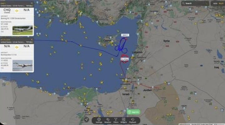 Suriye’de bir Rus üssünün yakınında uçan ABD Hava Kuvvetleri’ne ait KC-135 hava aracının çizdiği rota gündem oldu.