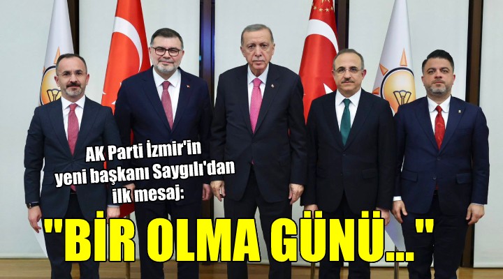 SONKALEİZMİR-AK Parti İzmir'in yeni başkanı Bilal Saygılı, sosyal medya hesabından dikkat çeken bir paylaşım yaptı. AK Parti Genel Başkanı ve Cumhurbaşkanı Recep Tayyip Erdoğan, İzmir Büyükşehir Belediyesi AK Parti Grup Başkanvekili Özgür Hızal, AK Parti İzmir İl Teşkilat Başkanı Nail Kocabaş ve eski il başkanı Kerem Ali Sürekli'nin bir arada olduğu fotoğrafı paylaşan Saygılı, "Gün birlik olma günü, gün bir olma günüdür. Bizim davamız, birlik, beraberlik ve kardeşlik davasıdır. Bu şuurla AK Parti’ye gönül vermiş her bir kardeşimizle ilk günkü aşk ile çalışacağız. Rabbim yardımcımız olsun" ifadelerini kullandı.