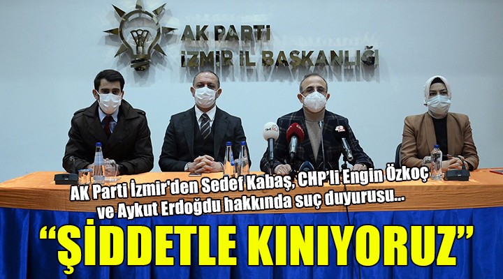 SONKALEİZMİR-AK Parti İzmir İl Başkanlığı, Cumhurbaşkanı Recep Tayyip Erdoğan'a haraket ettiği iddiasıyla tutuklanan gazeteci Sedef Kabaş hakkında İzmir Adliyesi'nde suç duyurusunda bulundu. AK Parti İzmir İl Başkanı Kerem Ali Sürekli, suç duyurusu sonrası partisinin il başkanlığında basın açıklaması yaptı. Basın açıklamasında Kadın Kolları İl Başkanı Dilek Yıldız Büyükaktan ve Tanıtım ve Medya Başkanı Dilaver Kişili'nin yanı sıra Siyasi ve Hukuki İşler Başkanlığı İl Başkan Yardımcısı İl Başkanvekili Ali Aslan da yer aldı.