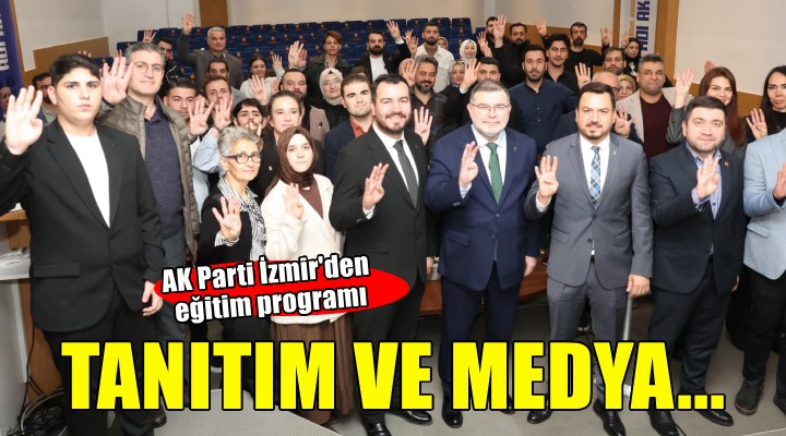 AK Parti İzmir Tanıtım ve Medya Başkanlığının hazırladığı “AK Parti İzmir 3 Kademe Tanıtım ve Medya Eğitim Programı” İl Başkanlığı’nda gerçekleştirildi. Eğitim programına; AK Parti İzmir İl Başkanı Bilal Saygılı, Genel Merkez Tanıtım ve Medya Başkan Yardımcısı Dr. Savaş Yılmaz, İl Tanıtım ve Medya Başkanı Safa Narlı, 30 İlçe Ana Kademe, Kadın ve Gençlik Kolları Tanıtım ve Medya Başkanları ile Manisa, Aydın, Muğla, Uşak, Denizli, Afyonkarahisar ve Kütahya İl Tanıtım ve Medya Başkanları katıldı. Eğitimci Enes Özdemir’in sunumuyla 12 başlıkta eğitim gerçekleştirildi.