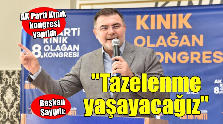 AK Parti belediyeciliğinin Kınık'ta önemli hizmetler yaptığını belirten Saygılı, "Kınık'ta Sadık Doğruer kardeşim çok ciddi hizmetler yaptı ama Kınık'ta şu an bizim yaptığımız eserlere hasar verme noktasına kadar gelişmiştir. Bunun sorumlusu da CHP zihniyetidir. Kınık maalesef durağan bir döneme girmiştir. Ama hep beraber safları sıkıştırarak, kardeşlik hukukunu koruyarak, fitne ve dedikodudan uzak durarak Kınık'ın tekrar AK Belediyecilik ile buluşmasını sağlayacağız. Ben inanıyorum ki, bu en güzel şekilde olacaktır. Bu duygu ve düşüncelerle hepinizi en kalbi duygularımla selamlıyorum. Kınık Kongremizin İzmir'imize ve Kınık'ımıza hayırlar getirmesini diliyorum."