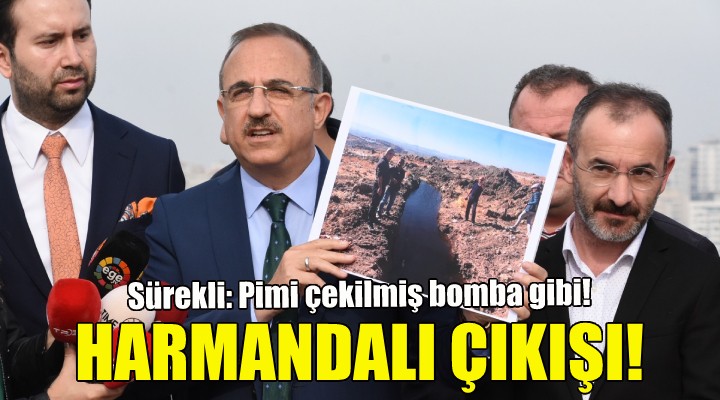 Başkan Sürekli, Harmandalı çöp depolama alanına günde 4 bin 500 - 5 bin ton civarında çöp döküldüğünü ileri sürerek, "Bu tesisin 150 hektarlık alanı heyelan bölgesinde. Buna rağmen çöp getirilmeye devam ediyor. Bu derhal durdurulmalılar. Büyükşehir, laf üstüne laf koyuyor, çöp üstüne çöp koyuyor; ama taş üstüne taş koymuyor. Gözle görülebilir bir icraatları yok. Bir şeyler yapmış gibi göstermek adına buraya istinat duvarları örüyorlar, kazık çakıyorlar. Kendi raporlarında bu kazık çakmaların da tehlikeli olduğu ve sorunu artırdığı söyleniyor. Buna rağmen duyarsızlık devam ediyor. Buradaki zehirli atık suların kontrol altına alınması için çöp yığınlarının 500 metre yatayından itibaren 40 metrelik drenaj boruları yapılmalı. Atıklar, drenaj borularıyla beraber oluşturulacak havuza akıtılmalı. Zaten burada oluşan sorunlar 20 yılda düzelmez. Ekolojik denge bozuldu” diye konuştu.
