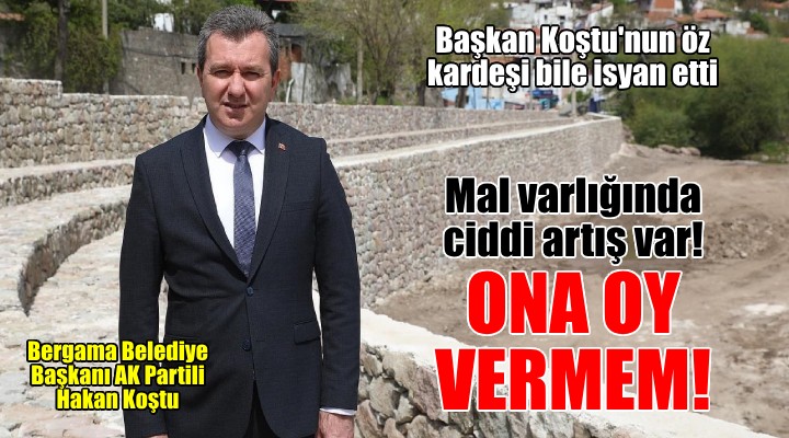 Bergama Belediye Başkanı Hakan Koştu'nun kız kardeşi Hale Koştu Özyeşil, ağabeyi Hakan Koştu'nun malvarlığıyla ilgili sosyal medya hesabından dikkat çeken bir açıklama yaptı. Hale Koştu, ağabeyinin İstanbul, Almanya ve Bergama'da villalar aldığını belirterek, "Yaşam standartlarındaki artışı aile geliri olarak açıklaması mümkün değil" ifadelerini kullandı.